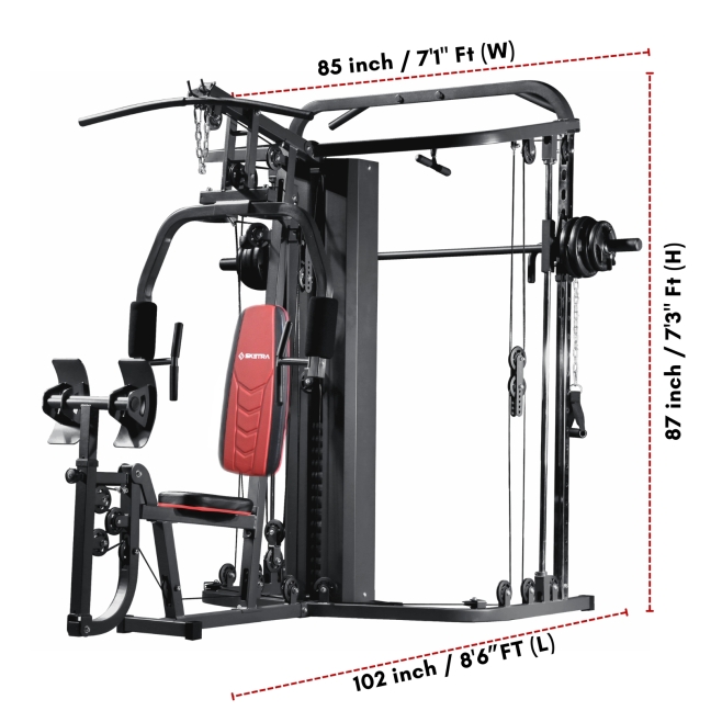 Elevate your strength training with the built-in Smith Machine, providing a guided and controlled lifting experience. The Sketra Intense Multistation Gym seamlessly combines the benefits of a multistation gym with the precision and safety of a Smith Machine, allowing you to target various muscle groups with confidence.