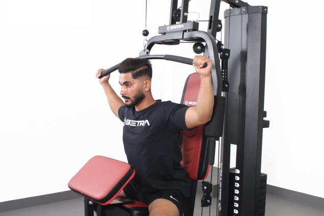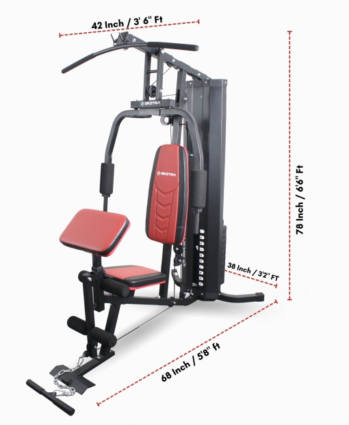The multi-station gym has an adjustable seat, so users between 150 and 210 cm in height may utilise the equipment without issue. All your comfort needs will be met with the extra-wide backrest, ergonomic cushioning, and non-slip grips.