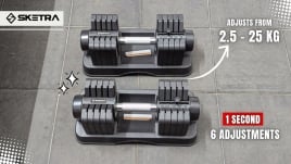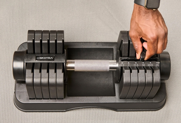 One dumbbell with 6 weight options – Minimal Space, Durable