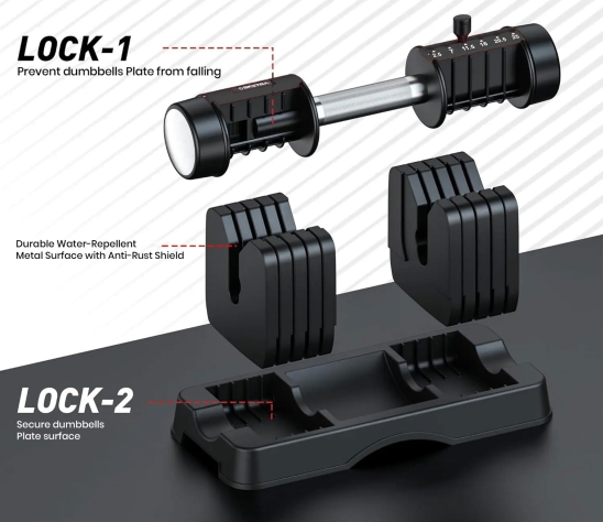 Sturdy and Solid Crafted from premium alloy metals and tough PVC, these adjustable dumbbells are designed for durability. Their robust build and dependable performance make them a trustworthy choice for your fitness journey, ideal for building strength.