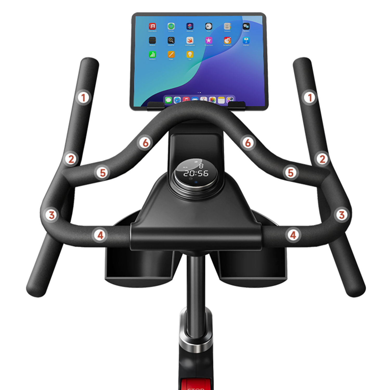 Enjoy customizable comfort during your smart workouts with the four-way adjustable seat and handle of our Gym Spin Bike.