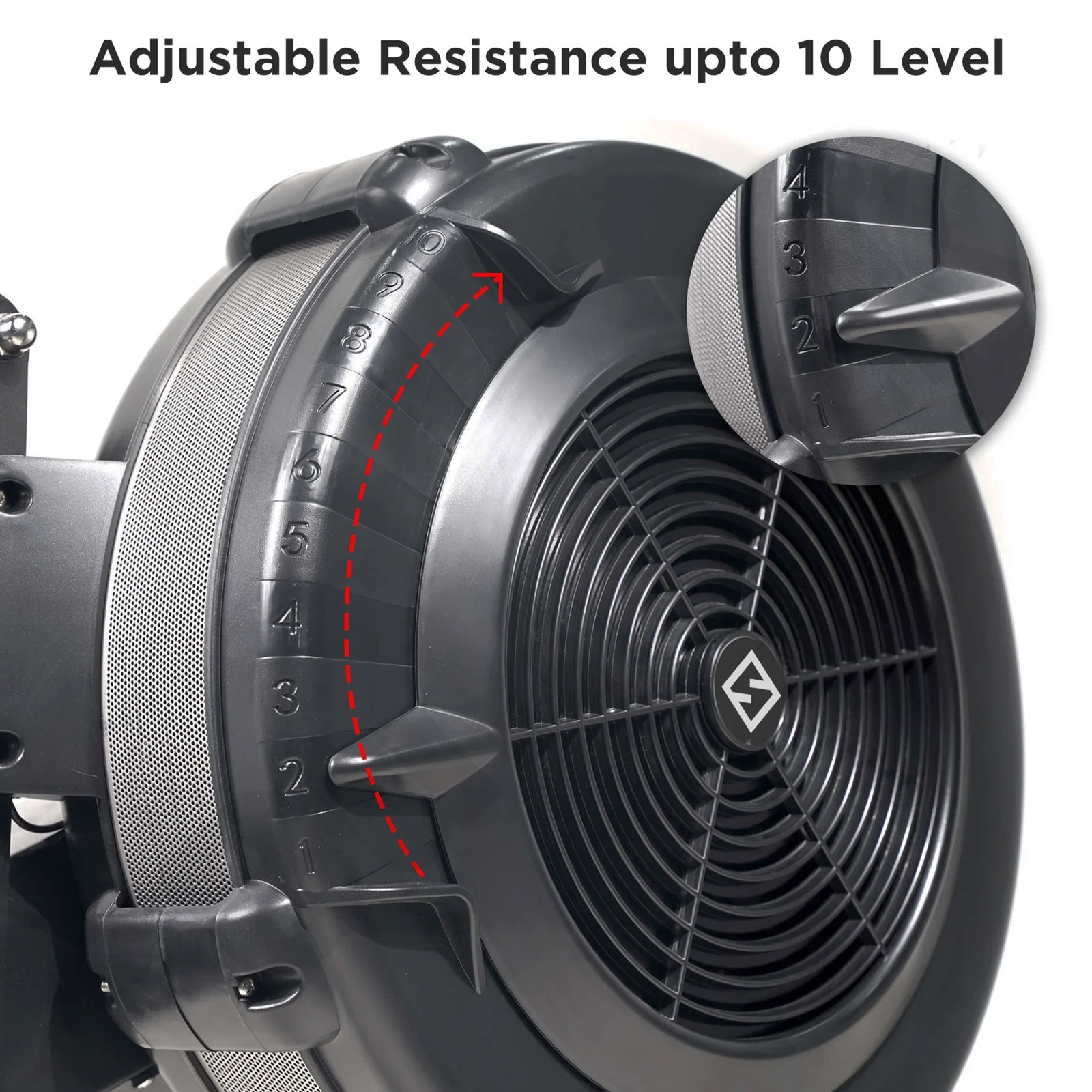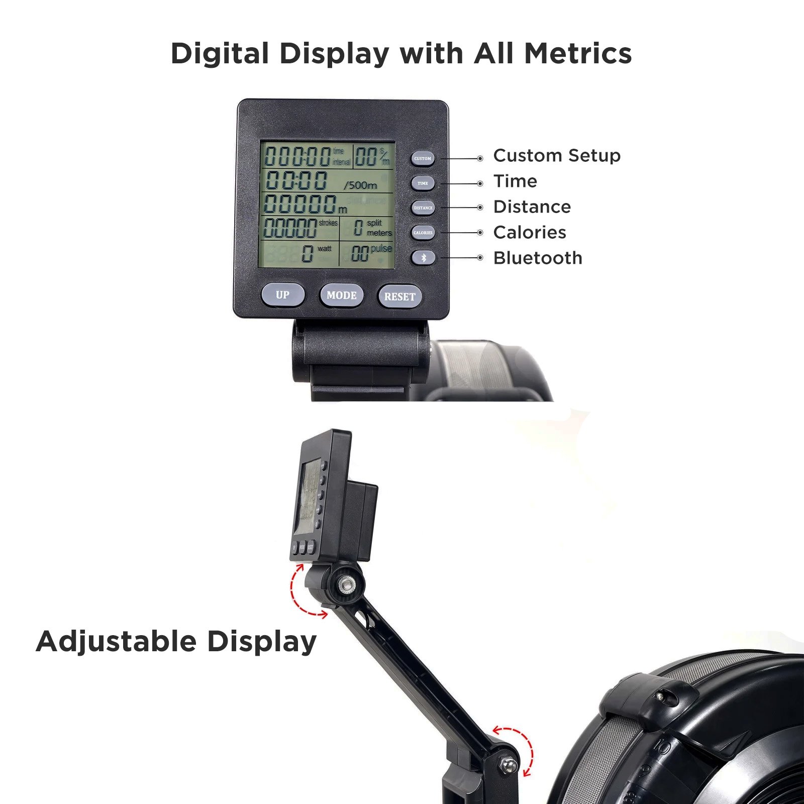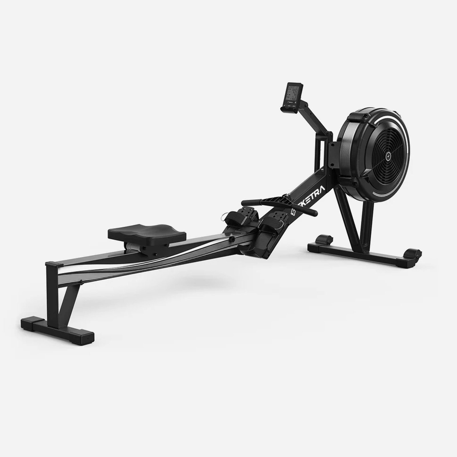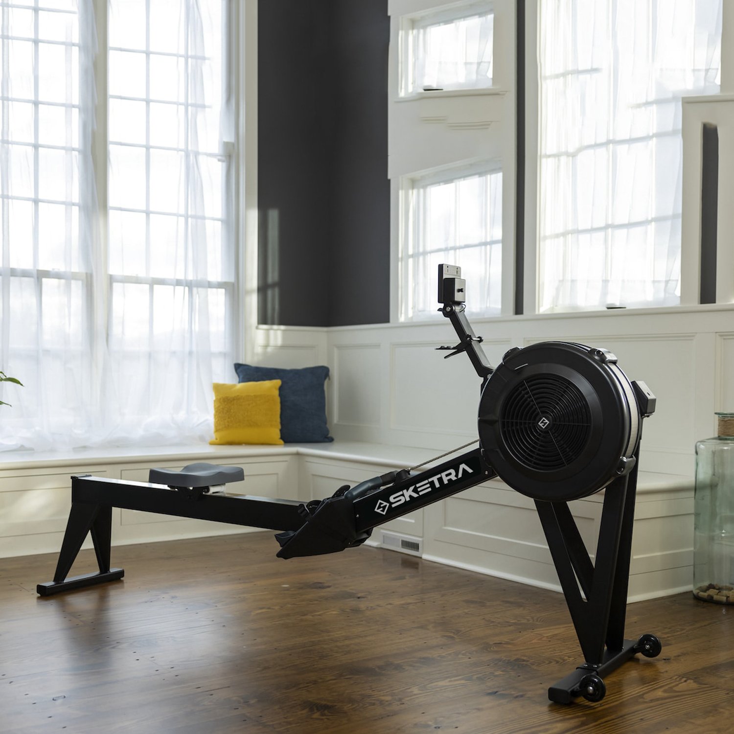 The rower is a complete exercise that works many muscle groups, such as arms, shoulders, back, abs, glutes, and legs. By pulling on the handle and pushing with your legs, you strengthen and tone your whole body effectively.