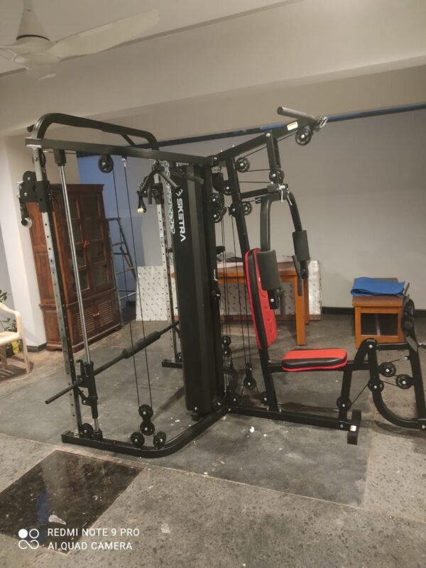 Elevate your strength training with the built-in Smith Machine, providing a guided and controlled lifting experience. The Sketra Intense Multistation Gym seamlessly combines the benefits of a multistation gym with the precision and safety of a Smith Machine, allowing you to target various muscle groups with confidence.