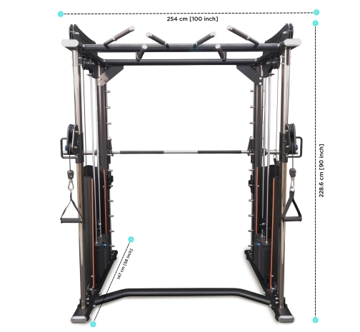 The precision-guided Smith rod moves smoothly and stays perfectly balanced, allowing users to perform a wide range of exercises with confidence. Its guided support enables single-person training, making heavy and controlled workouts possible without the need for a spotter.